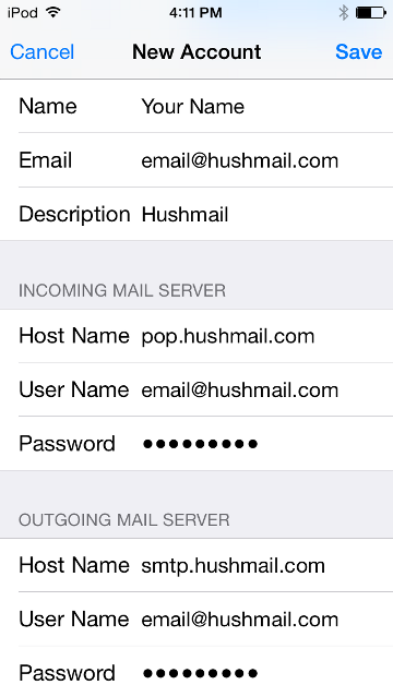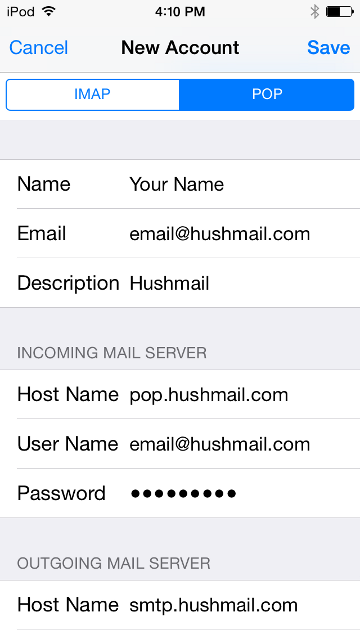 Set up iPhone and iPod Touch to work with Hushmail (POP)