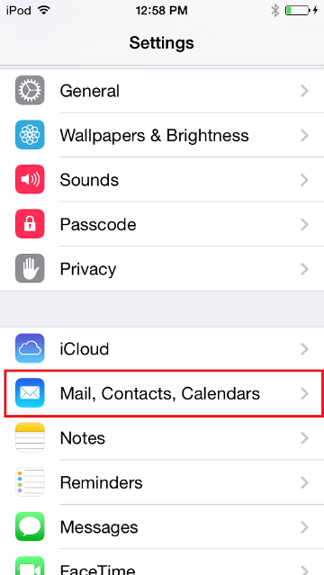- Tap Mail, Contacts, Calendars (iOS 10 or below) or Accounts & Passwords (iOS 11).