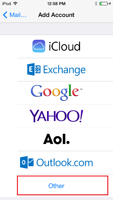 - Tap Other, then tap Add Mail Account