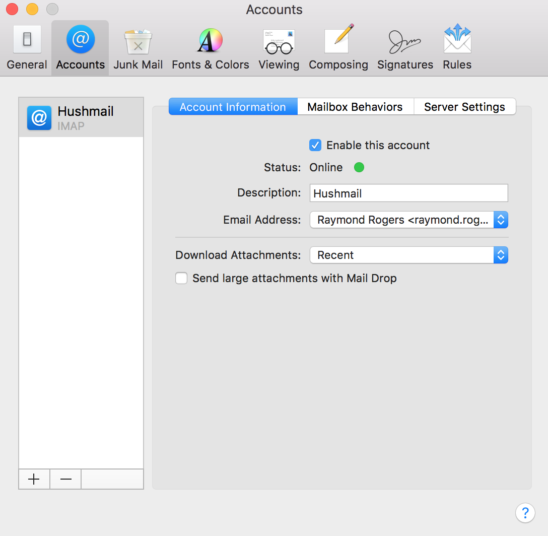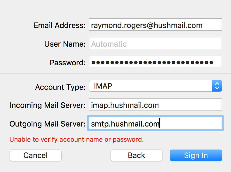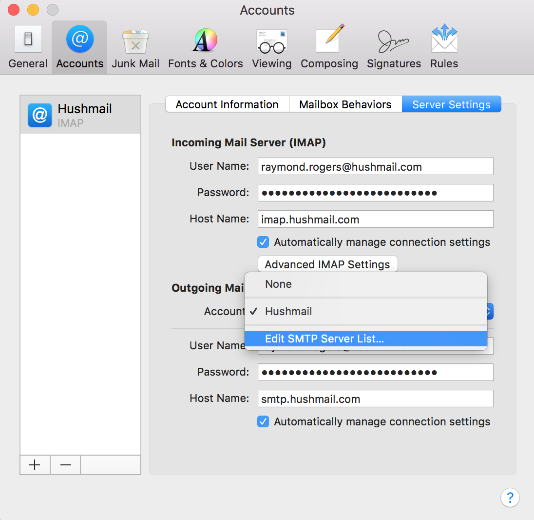Set up Mac Mail to work with Hushmail (IMAP)