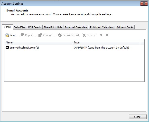 Set up Outlook 2010 or 2013 to work with Hushmail (IMAP)
