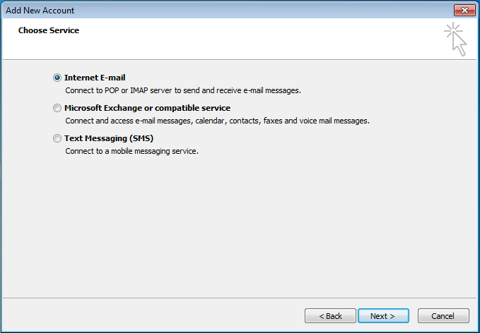 - Select Internet E-mail and click Next.