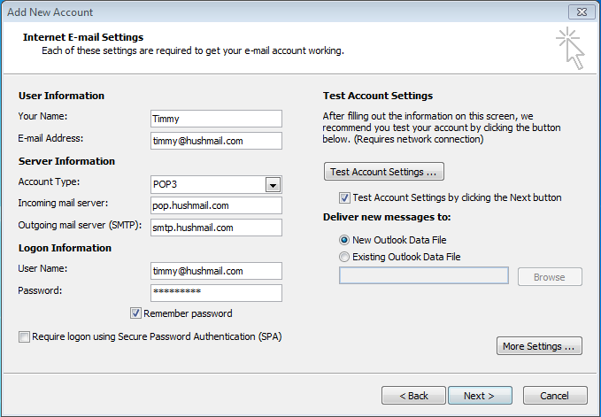 Outgoing mail server (SMTP): smtp.hushmail.comLogon Information