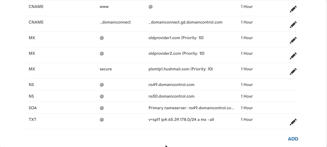 This article will teach you how to edit your existing domains MX records to point to Hushmail if you have the domain registered on GoDaddy.com