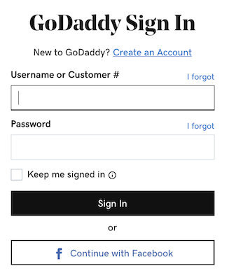 The next page will ask you for your Username and Password for your account on GoDaddy to sign into the GoDaddy control panel.